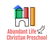 Abundant Life Christian Preschool provides a safe, loving, educational environment for children who are preschool age by focusing on Christ-centered care and education to foster a life-long desire to follow Christ and serve others using the unique gifts God has given each child.